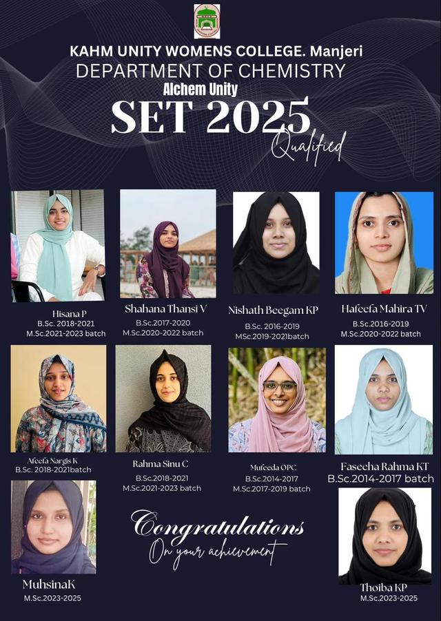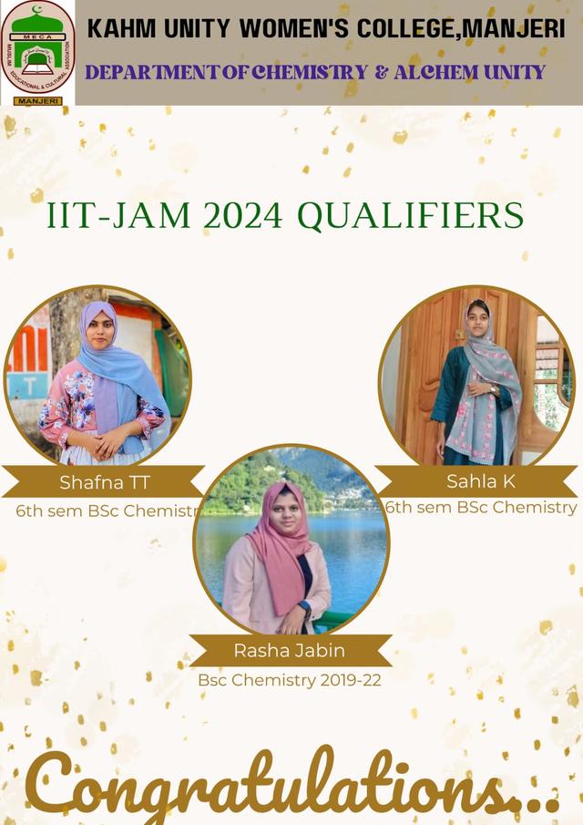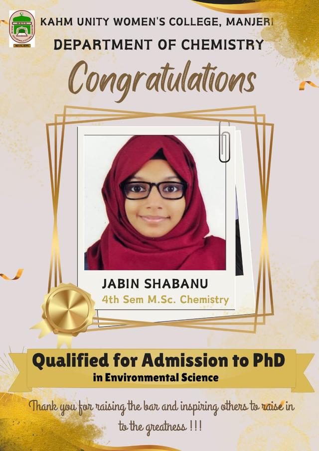 Shaniba P of final year Chemistry Student has been selected for the position of Marketing Executive at “INTERVEL”, Malappuram Shiblu of final year Chemistry Student has been selected for the position of ...
