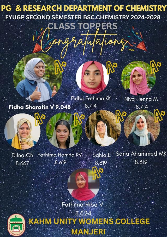 Achivments 9th Rank in M.Sc. Chemistry (University of Calicut)