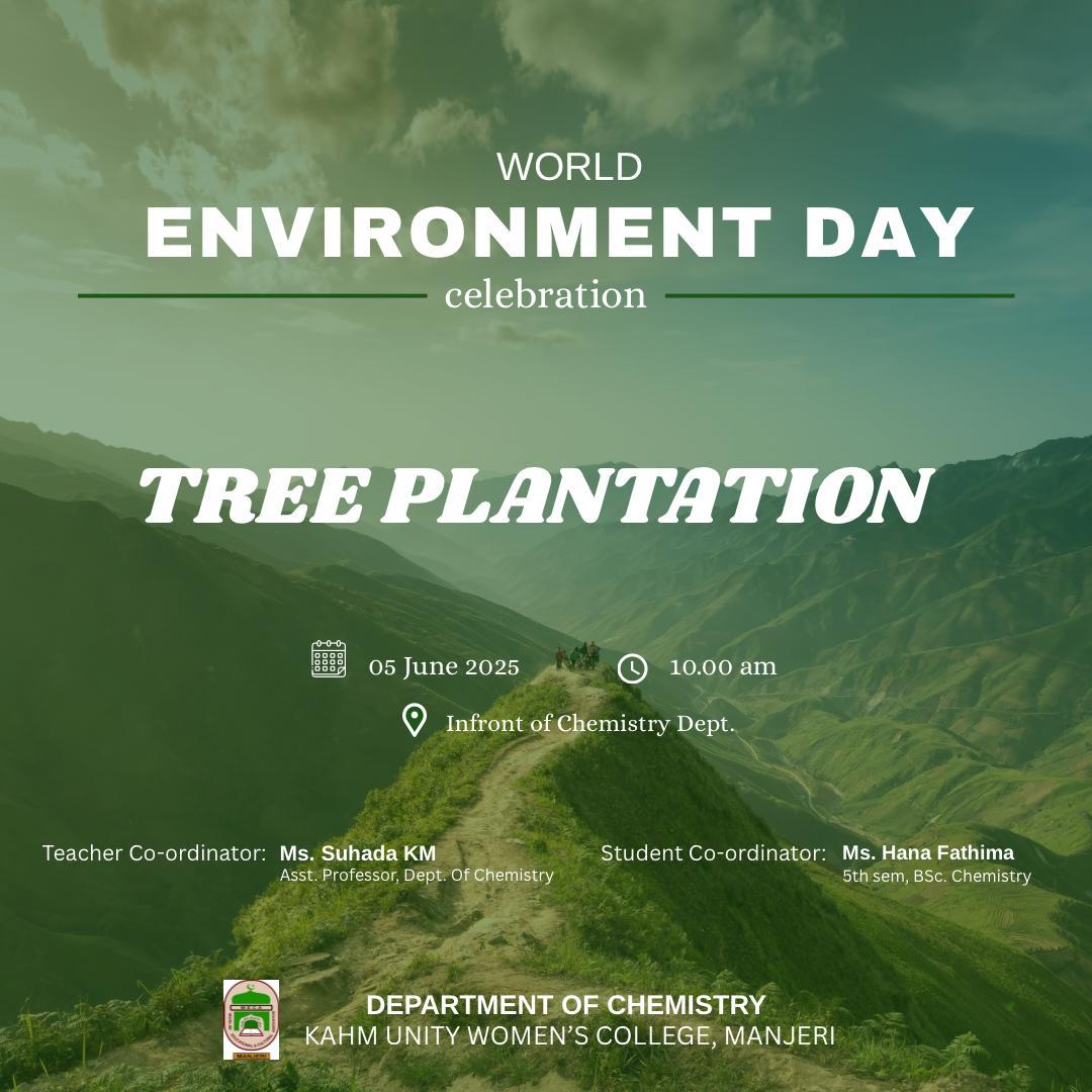 World Environment Day – Tree Plantation DriveOrganized by the Department of Chemistry, KAHM Unity Women’s College, ManjeriDate: 05 June 2025Time: 10:00 AMVenue: In front of Chemistry DepartmentIn celebration of World Environment Day 2025, the Department of Chemistry at KAHM Unity Women’s College, ...