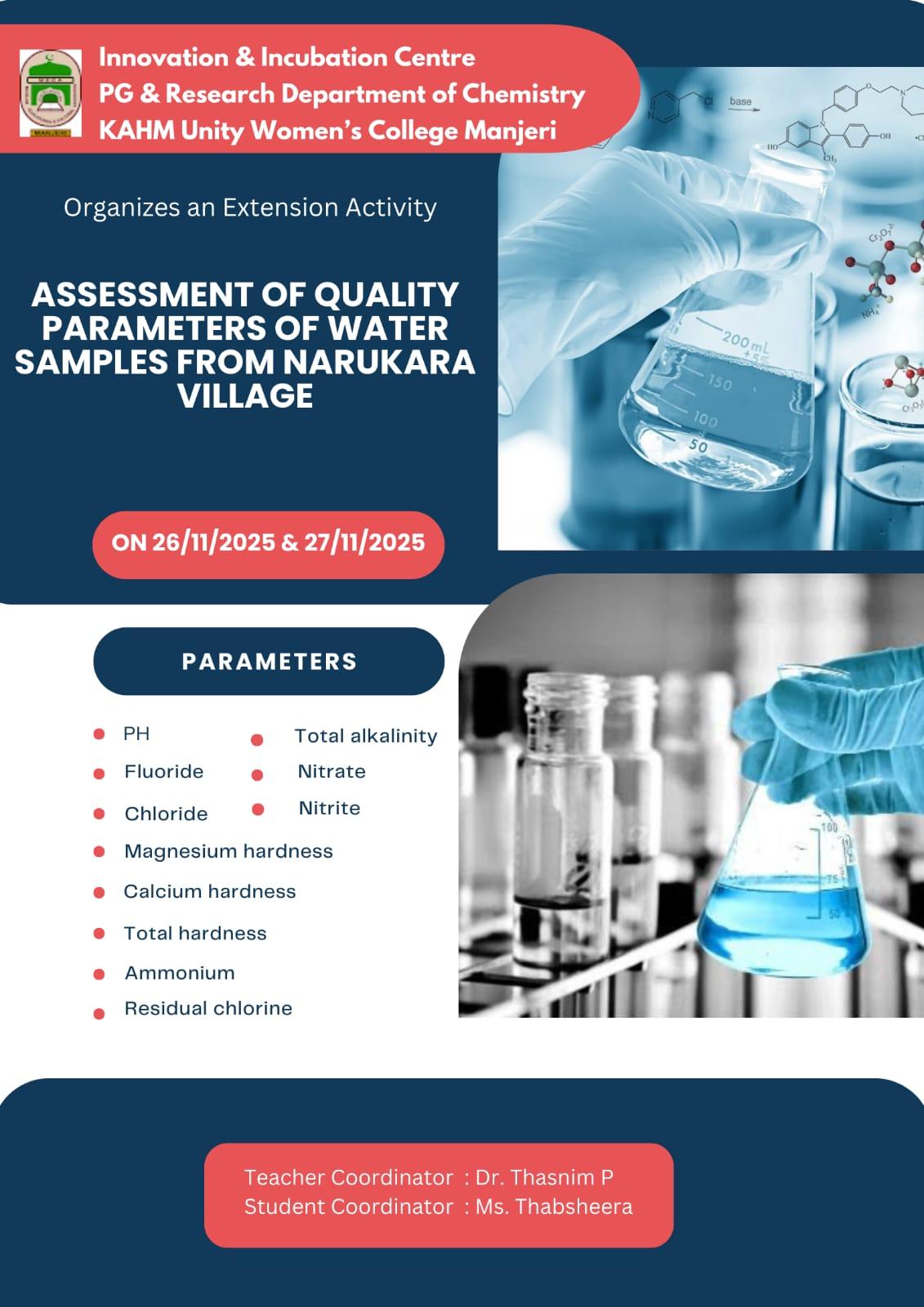 The Innovation & Incubation Centre of the PG and Research Department of Chemistry, KAHM Unity Women’s College, Manjeri, organized an extension activity aimed at supporting the community by assessing the quality ...