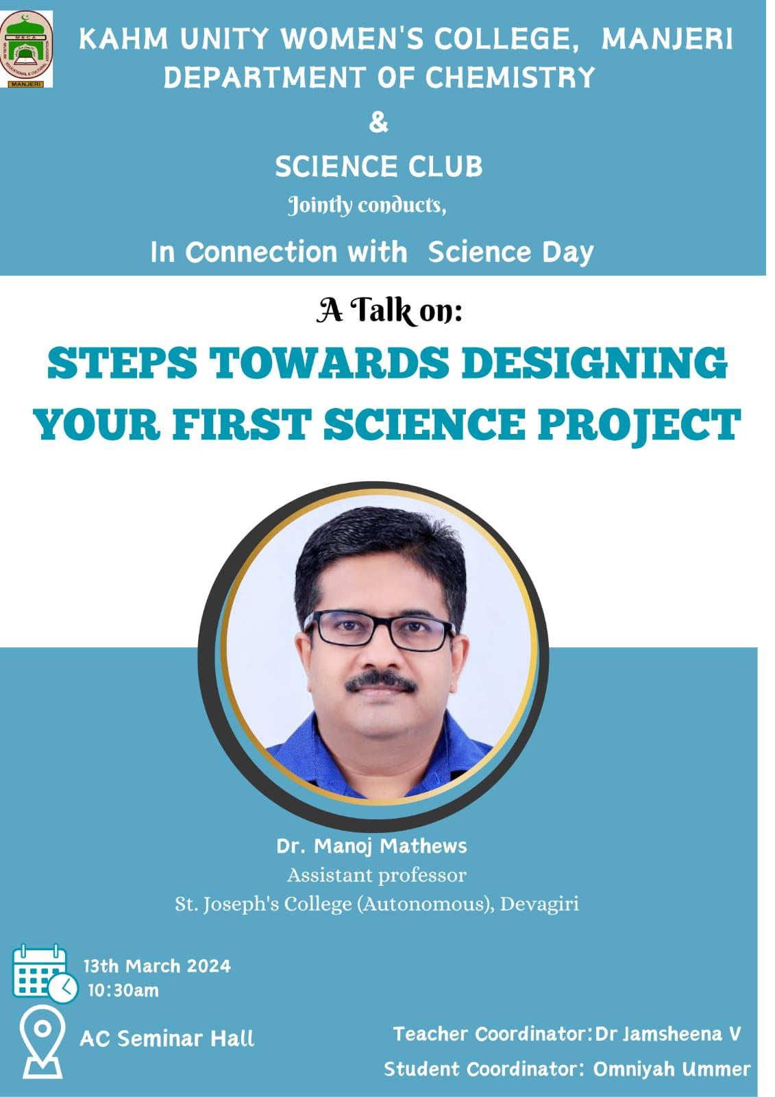 A Talk on ‘Nano Cellulose Scaffolds in Tissue Engineering’On 16/01/2025 at Seminar HallKAHM Unity Women’s College, ManjeriThe Department of Chemistry organized an engaging and informative talk on "Nano ...