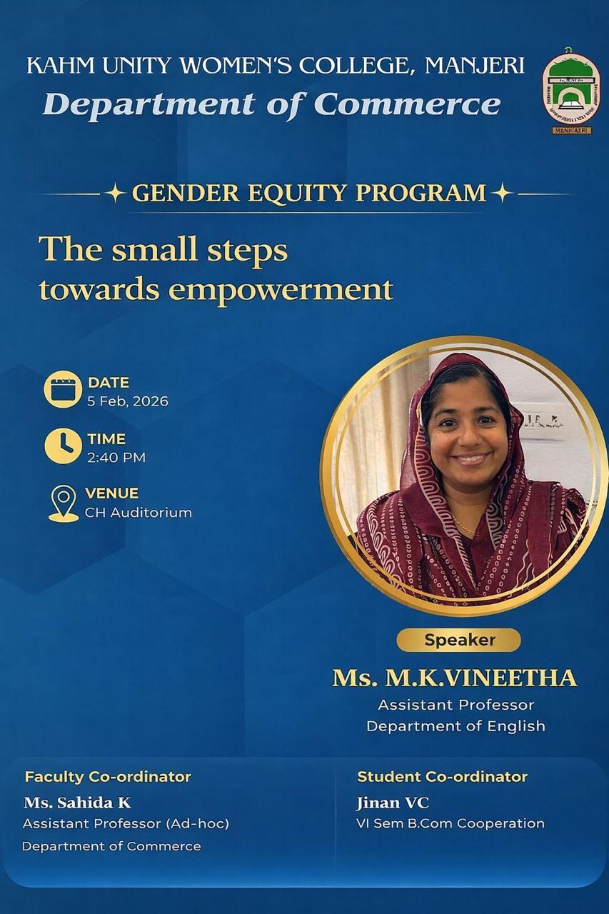 The Department of Commerce, KAHM Unity Women’s College, successfully organized a Gender Equity Program titled “The Small Steps Towards Empowerment” on 5 February 2026 at 2:40 PM in the CH ...