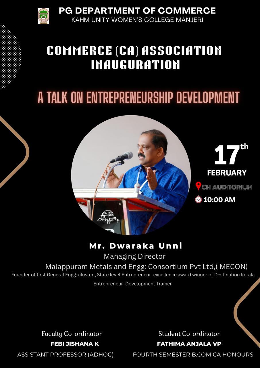 The Commerce (CA) Association of the PG Department of Commerce, KAHM Unity Women’s College, Manjeri was inaugurated on 17 February 2026 at 10:00 AM in the CH Auditorium.The programme commenced with a welcome ...