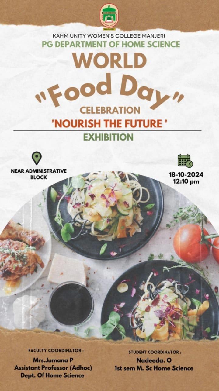 World Food Day is an international day celebrated on October 16th to promote global awareness and action for those who suffer from hunger and to highlight the need to ensure healthy diets for all. The PG Department of Home Science celebrated World Food Day on October 18, 2024, with the theme of the year Right to Foods ...