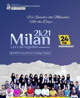 The students of 2014-17 batch of BSc Family and Community Science conducted a get together at college on 24th February, 2021. 13 students were gathered at the college. The programme named as 'Milan 2k21' was inaugurated ...