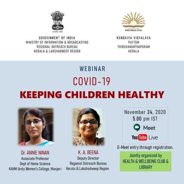 Dr Annie Ninan had been the resource person in the Webinar on Covid 19: Keeping Children Healthy jointly organized by Regional Outreach Bureau, Kerala and Lakshadweep under the Ministry of Information and Broadcasting, ...