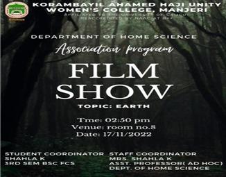 As a part of the association programme, the PG department of Home Science conducted a Film Show on ‘The Earth’ to inculcate a sense of environmental literacy in the students. Two short films named ...