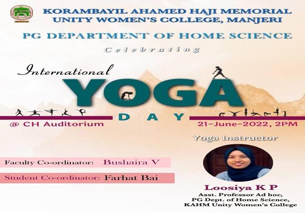 As part of International Yoga Day Celebration, PG Department of Home Science celebrated International Yoga Day on 21st June 2022 in the college Auditorium. The yoga instructions and demonstrations were done by Ms. ...
