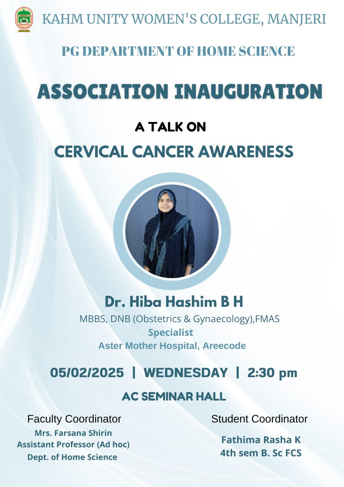 Cervical Cancer Awareness PG Department of Home Science, organized a talk on “Cervical Cancer Awareness" on 05th February 2025, as a part of Association Inauguration. This ...