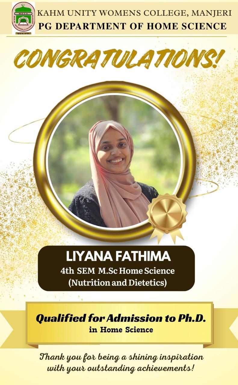 "Congratulations to Hana Shihab NK (First Sem B.Sc...