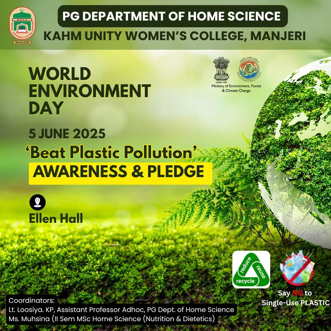 World Environment Day - ‘Beat Plastic Pollution’ - Awareness and PledgePG Department of Home Science———————————————The ...