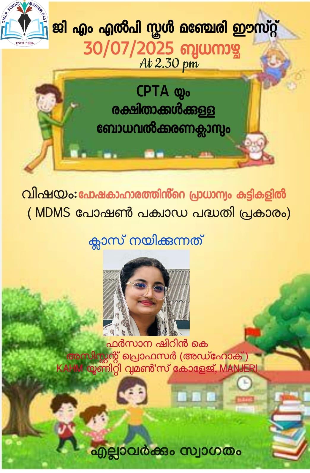 Ms. Farsana Shirin K, Assistant Professor (Adhoc), PG Department of Home Science, served as the resource person for an awareness session on "Importance of Nutritive Food in Children" at G M L P School, Manjeri on 30th of ...