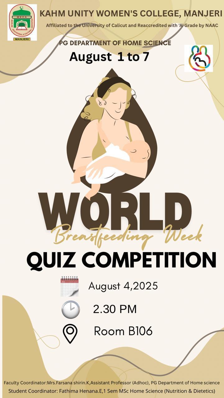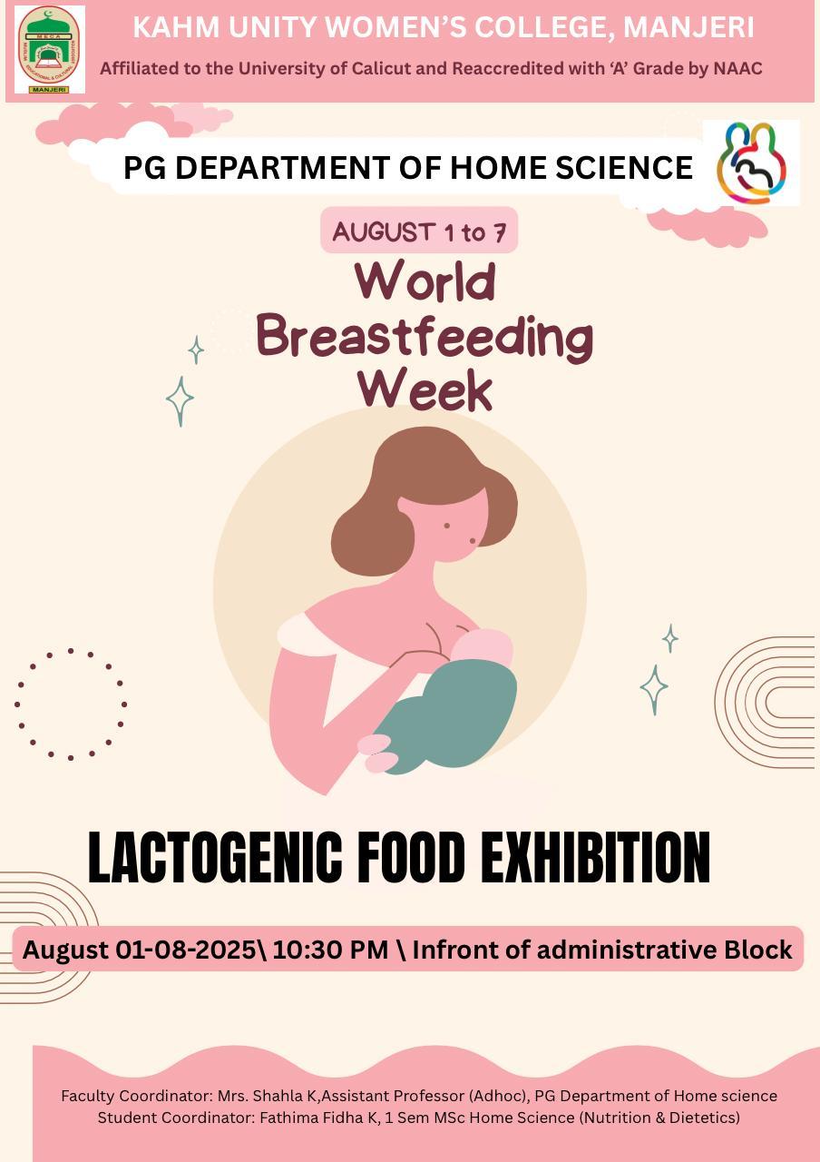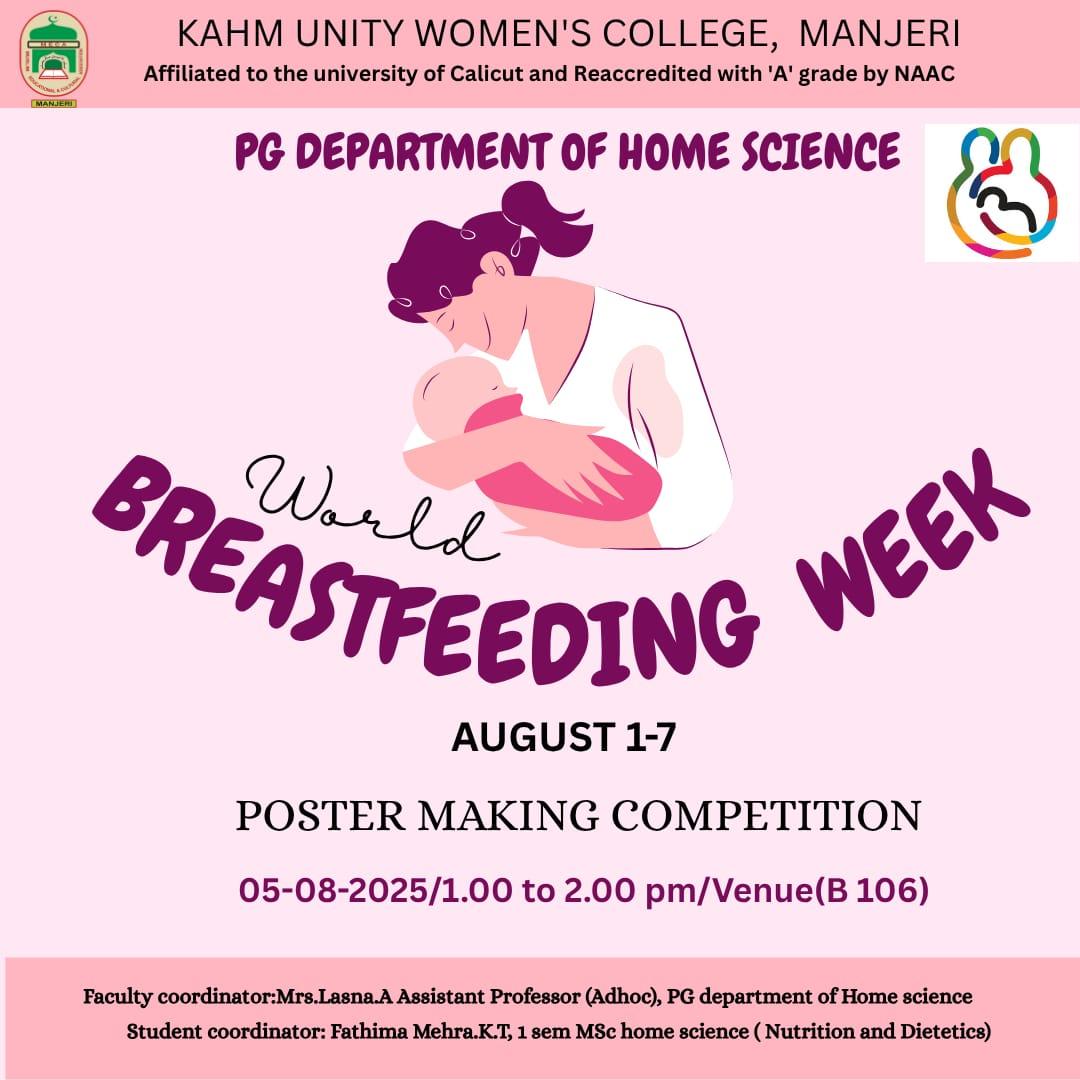 As a part of the World Breastfeeding Week observed from August 1 to 7,the department of Home Science,KAHM Unity Women's College Manjeri,conducted Poster Making Competition on August 5, 2025, at 1:00 pm in Venue B 106, ...
