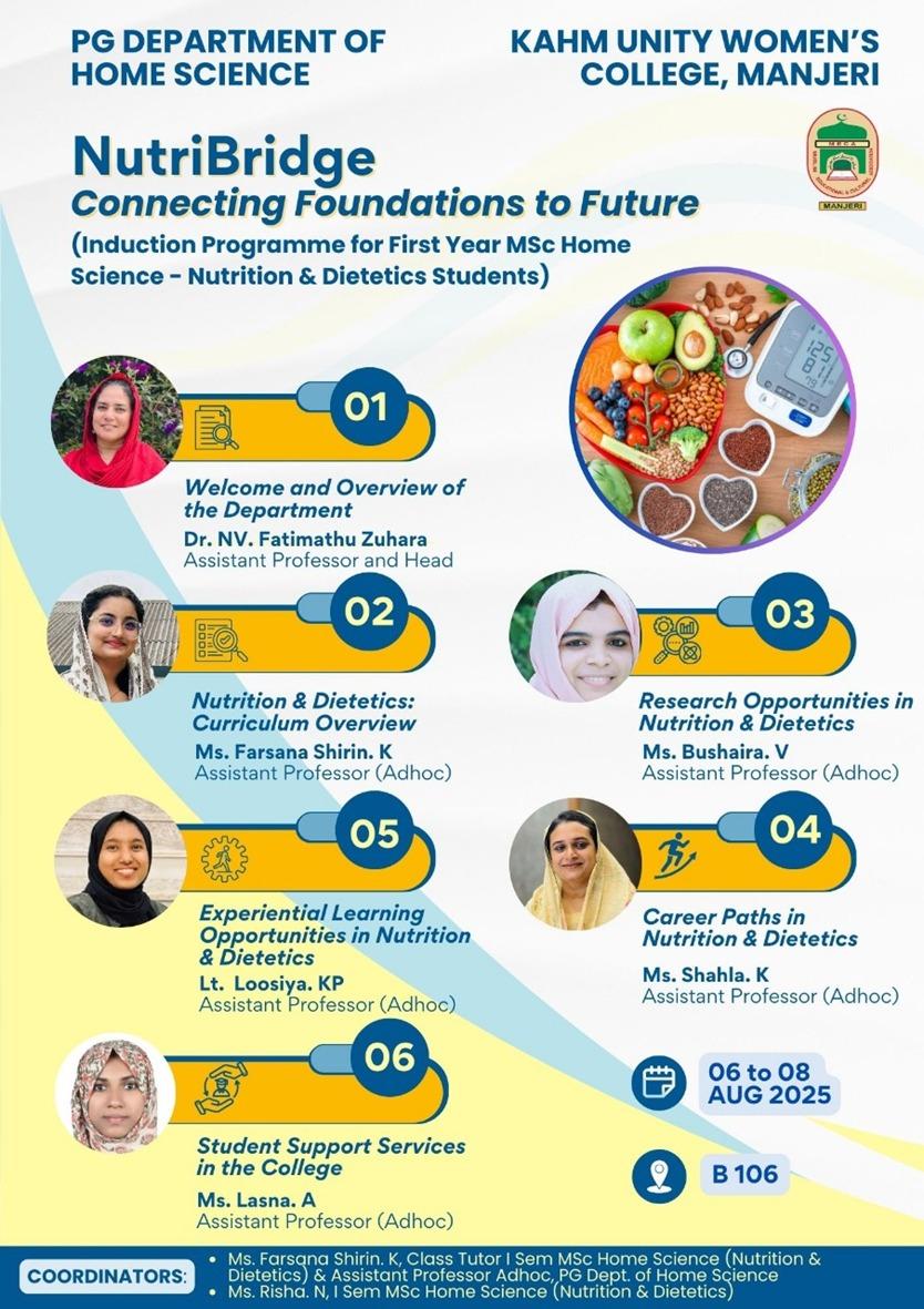 The PG Department of Home Science organized the induction programme “NutriBridge: Connecting Foundations to Future” for first-year MSc Home Science (Nutrition & Dietetics) students from 6th to 8th August ...