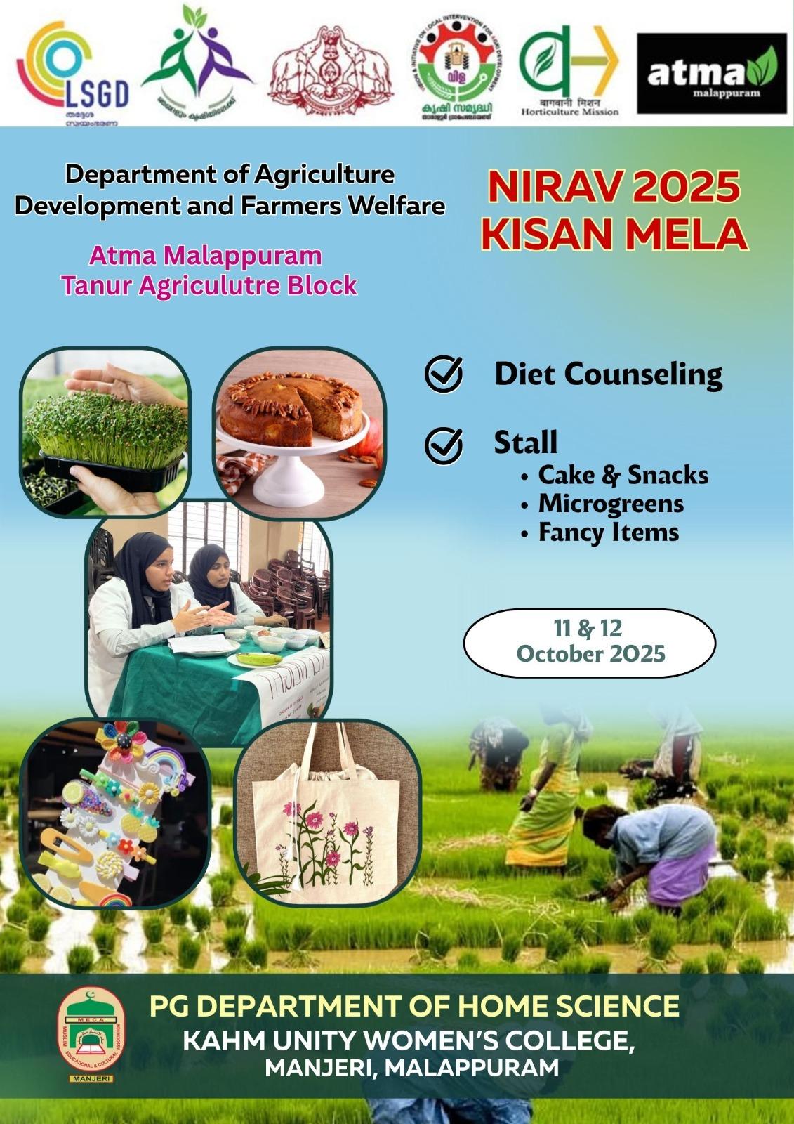 The staff and students of the PG Department of Home Science participated in NIRAV 2025 - Kisan Mela, jointly organized by the Department of Agriculture Development and Farmers Welfare and the Local Self Government ...