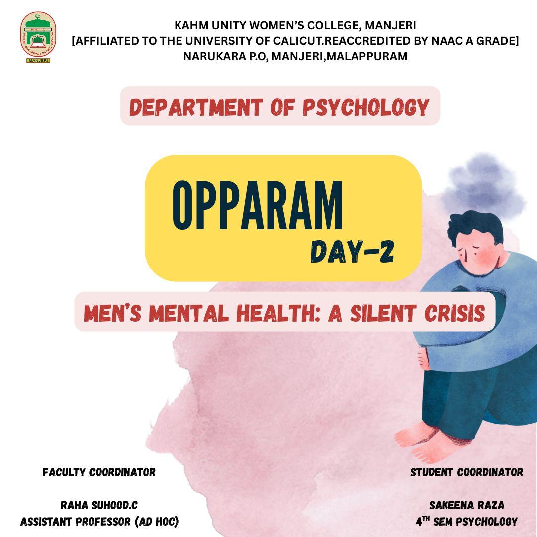 The Department of Psychology at K.A.H. M Unity Women’s College, Manjeri, organized “Opparam” (Day 2 - 29/01/26) an interactive open discussion platform centered on the theme “Men’s Mental ...