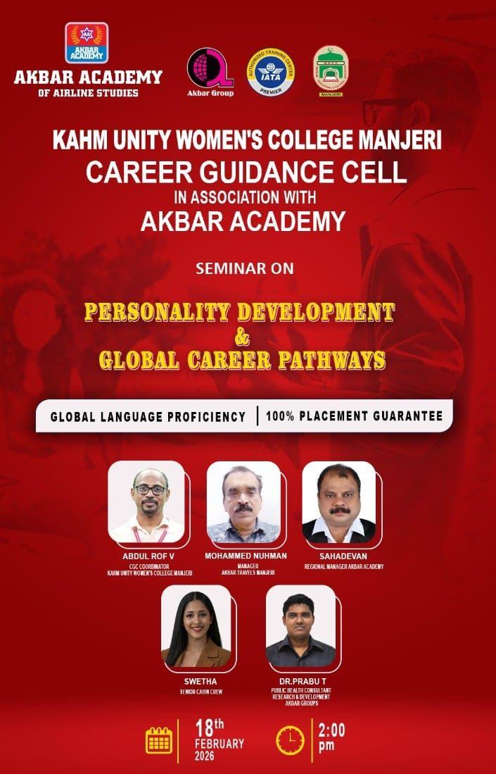 Career Jwala – A Career Guidance Session The Career Guidance Cell and Internal Quality Assurance Cell (IQAC) of KAHM Unity Women’s College, Manjeri, in collaboration with the University Employment ...