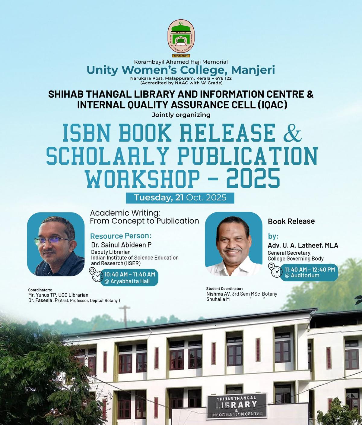 A book release ceremony and a workshop on “Academic Publication” were organized at Korambayil Ahammed Haji Memorial Unity Women’s College, Manjeri, in connection with the release of the latest ISBN ...