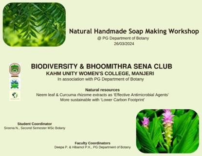 On 26th March 2024, Biodiversity Club and Bhoo Mithra Sena Club conducted an event entitled ‘Natural Handmade Soap Making Workshop’ at PG Department of Botany. The workshop aimed to educate participants on ...