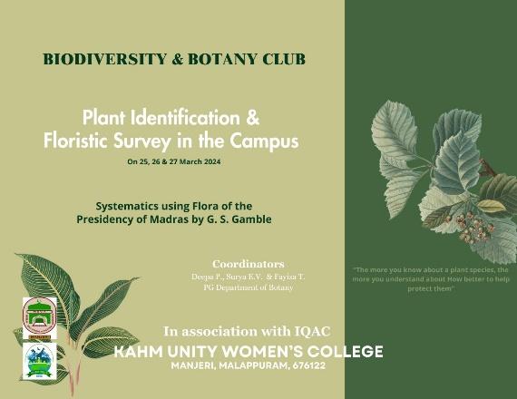 The Biodiversity and Botany Club in association with IQAC organized a comprehensive ‘Plant Identification and Floristic Survey’ within the campus premises on 25, 26 & 27 March 2024. The event aimed to ...