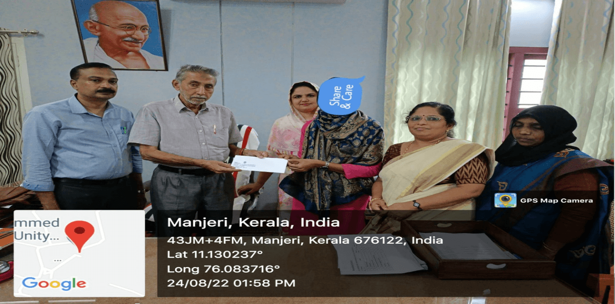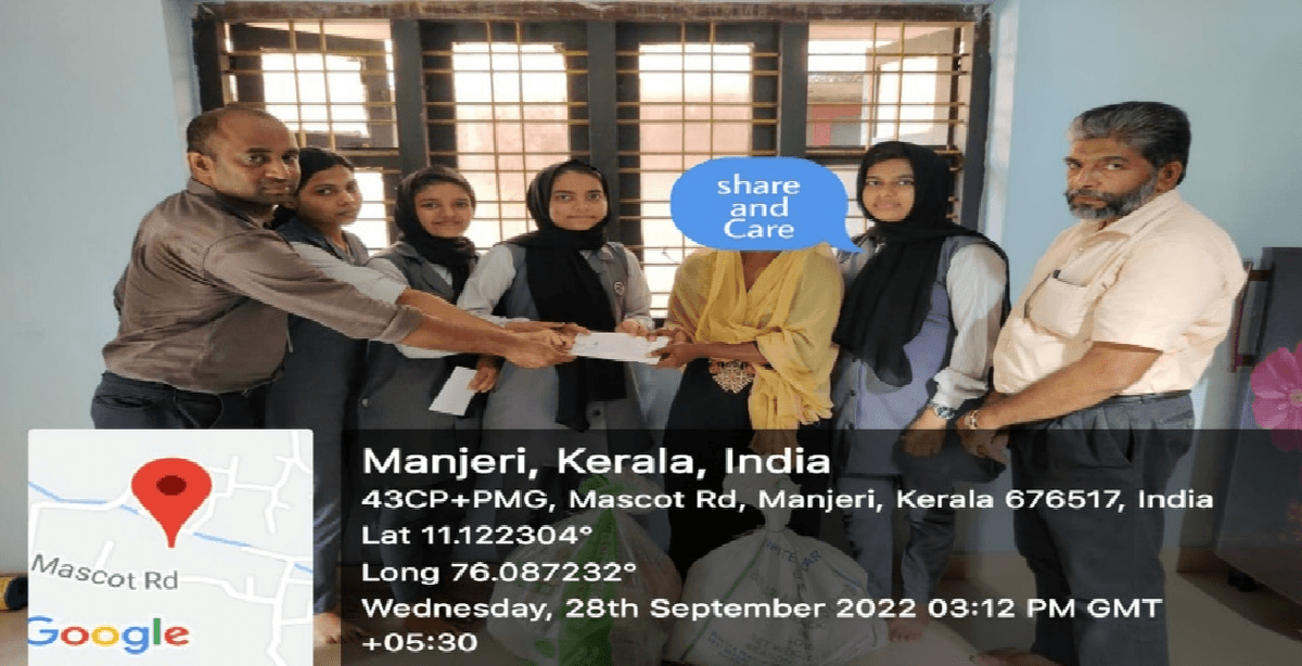 On 28-09 – 2022, 10,000 rupees and grocery items for one month(3100 rupees) are given to a homemaker named Hafsath who isliving at Alukkal with her four children.