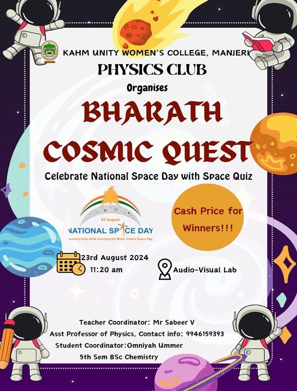 On August 23, 2024,as a part of National Space Day celebration, a quiz competition was conducted by Physics club to ignite curiosity and awareness about space exploration among students. The event, aimed at honoring ...