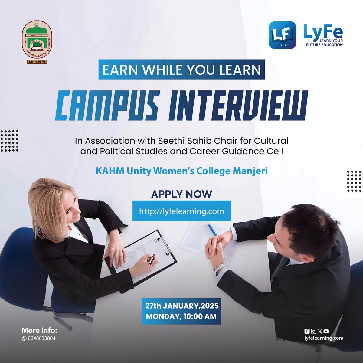 CAMPUS INTERVIEW Collaborating with LyFe - Learn Your Future Education, the Career Guidance Cell of the college organised a campus interview on 27 January 2025. A total of 39 students participated in the interview for ...
