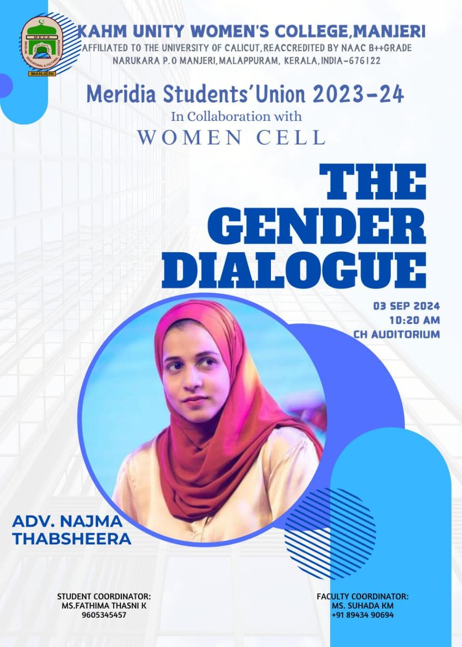 Meet & Greet The "Meet & Greet" program held on 16th December 2024 at KAHM Unity Women's College, Manjeri, was an inspiring event organized by the KSWDC Women Cell in association with the Zelinda Students Union. The event commenced with a welcome speech by Dr. Sangeetha, Assistant Professor of the ...